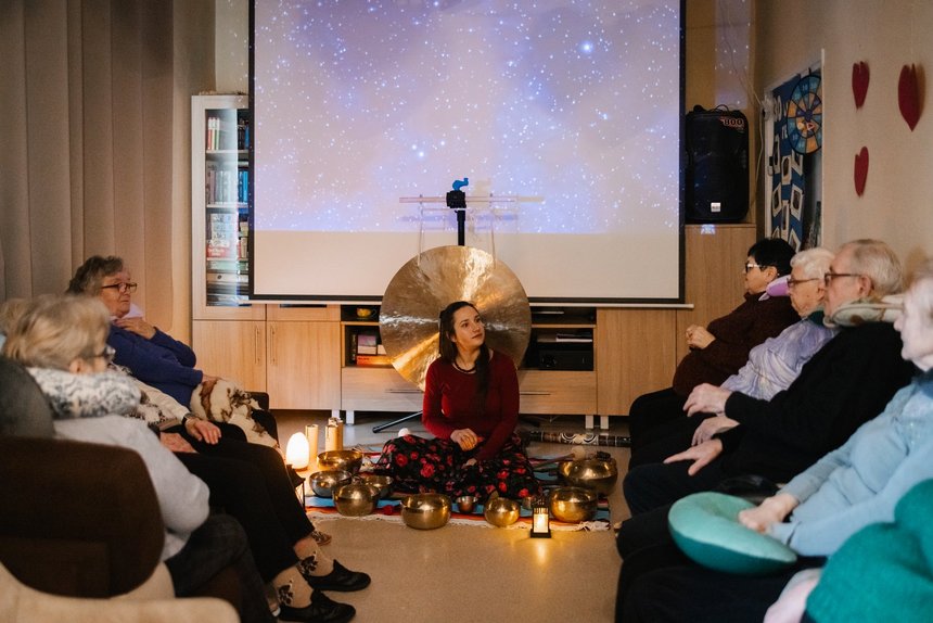 - Staramy się wyszukiwać jak najbardziej urozmaiconych form aktywności dla naszych seniorów - mówi Małgorzata Tabara-Urbańczyk, administratorka Domu Dziennego Pobytu przy al. 1 Maja 24/26. - Kiedy znajdziemy coś ciekawego, ale i nieoczywistego, przedstawiamy ofertę naszym pensjonariuszom i wspólnie dyskutujemy. To seniorzy podejmują ostatecznie decyzję, czy chcą spróbować i skorzystać właśnie z takich, a nie innych zajęć. Nie inaczej było w przypadku „Kąpieli w dźwiękach mis tybetańskich oraz gongów”. Pierwsze tego typu warsztaty odbyły się u nas w styczniu. Seniorzy długo dzielili się po nich między sobą wrażeniami. Dzisiejsze spotkanie było już drugim. Jeśli po nim nasi podopieczni zachowają taki sam entuzjazm, jak po pierwszym, to zajęcia będą kontynuowane regularnie raz w miesiącu.